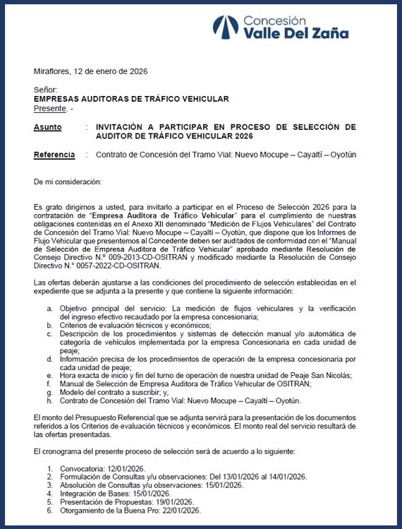 Opinión favorable de OSITRAN sobre la elección de la empresa auditora de tráfico vehicular